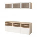 БЕСТО Шкаф для ТВ, комбин/стеклян дверцы - под беленый дуб/Сельсвикен глянцевый/белый прозрачное стекло, направляющие ящика,нажимные