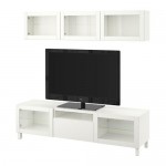 БЕСТО Шкаф для ТВ, комбин/стеклян дверцы - Лаппвикен/Синдвик белый прозрачное стекло, направляющие ящика,нажимные