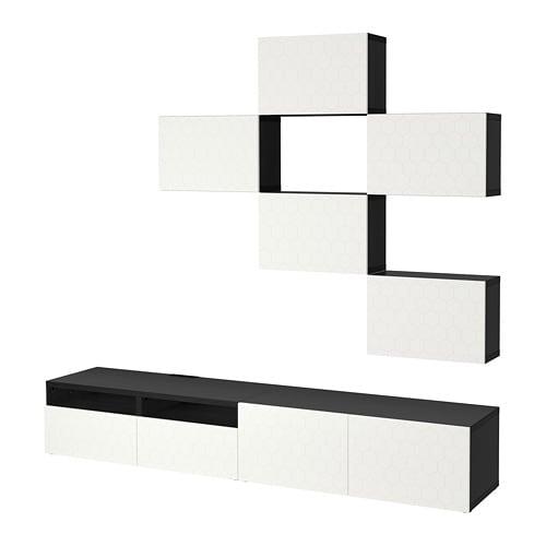 БЕСТО Шкаф для ТВ, комбинация - черно-коричневый/вассвикен белый, направляющие ящика, плавно закр
