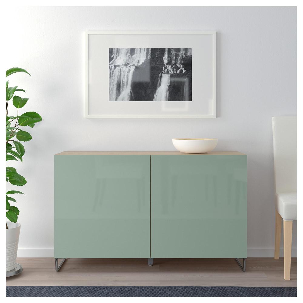 БЕСТО Комбинация для хранения с дверцами - под беленый дуб глянцевый/серо-зеленый светлый 0.0/5 оценка (0 голосов)