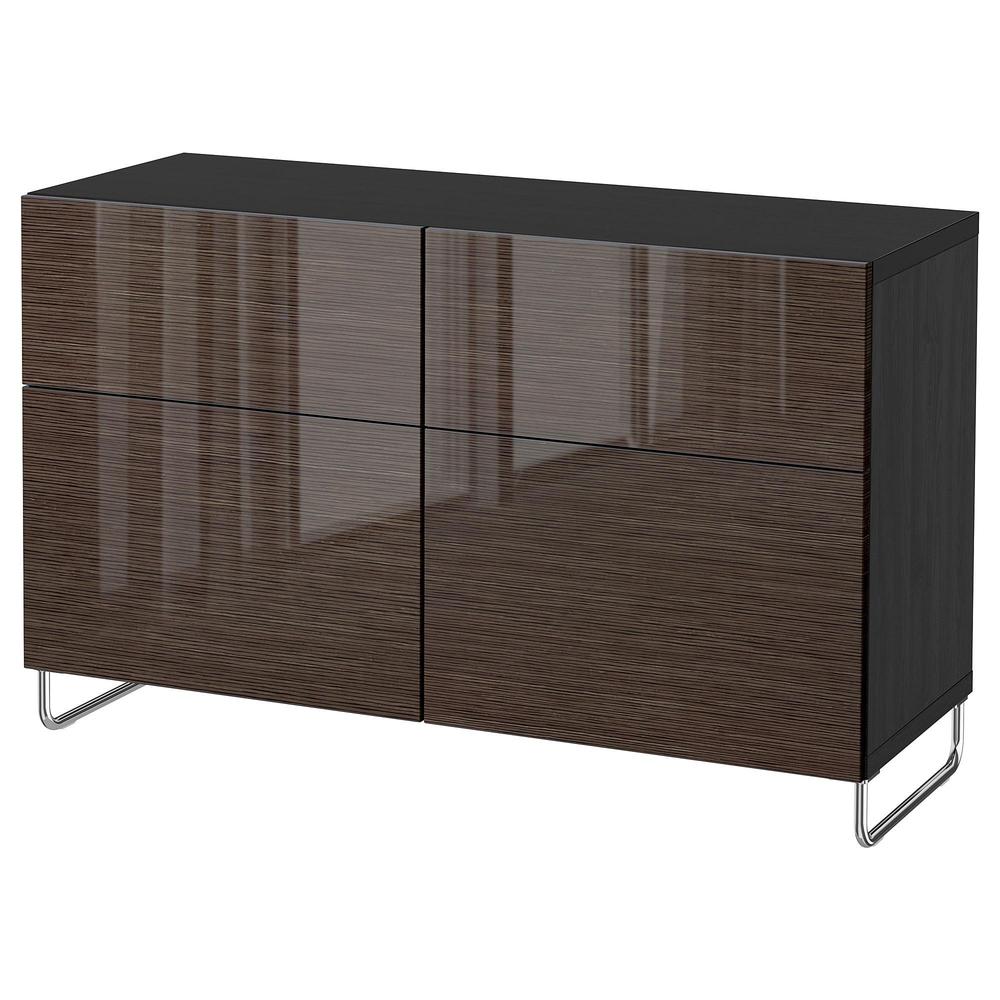 БЕСТО Комб для хран с дверц/ящ - черно-коричневый глянцевый/коричневый, направляющие ящика,нажимные