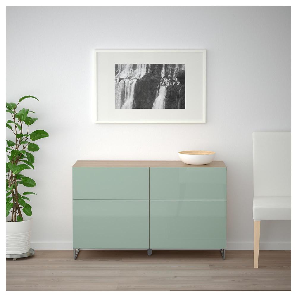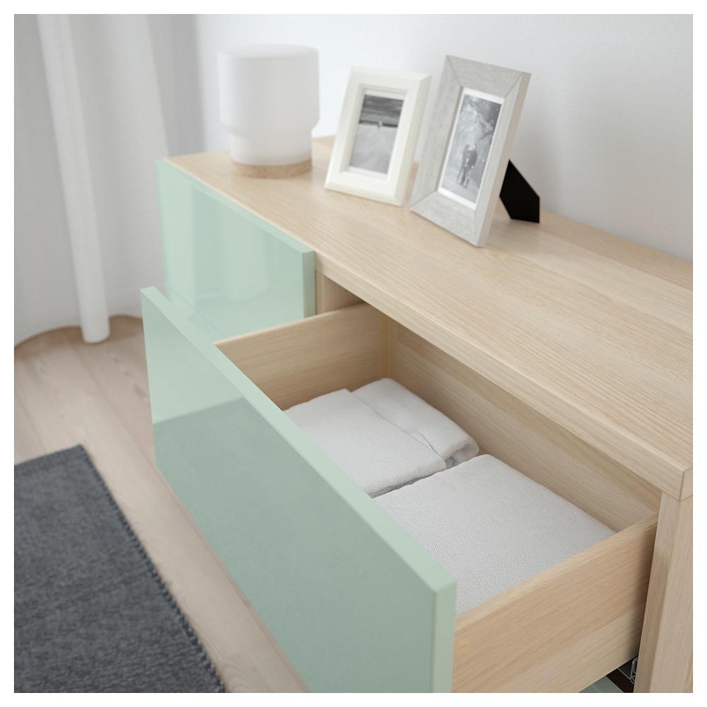 БЕСТО Комб для хран с дверц/ящ - под беленый дуб глянцевый/серо-зеленый светлый, направляющие ящика, плавно закр 0.0/5 оценка (0 голосов)