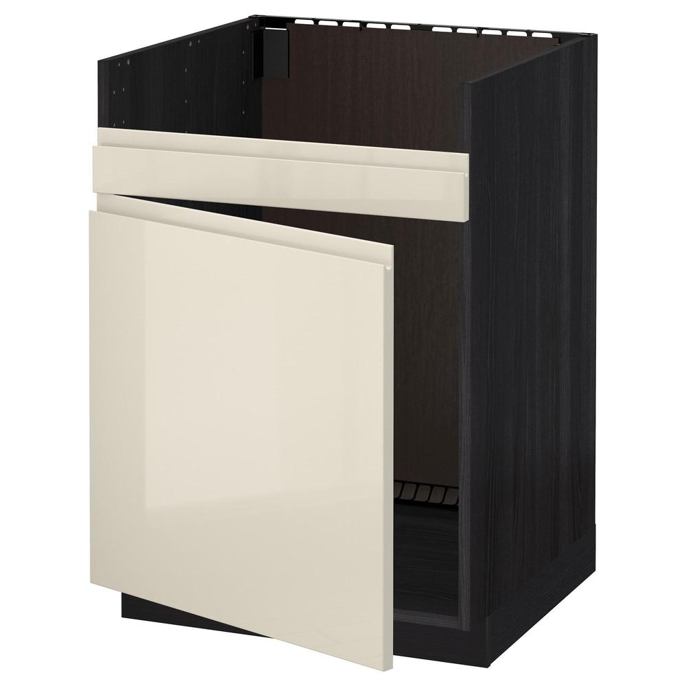 МЕТОД Напольный шкаф для мойки ХАВСЕН - под дерево черный, Воксторп глянцевый светло-бежевый