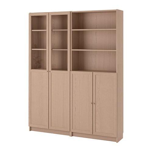 БИЛЛИ / ОКСБЕРГ Стеллаж/панельные/стеклянные двери - дубовый шпон, беленый