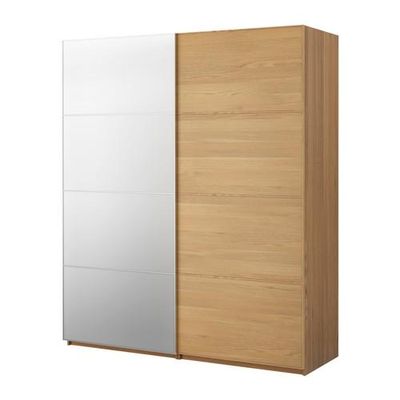 ПАКС Гардероб с раздвижными дверьми - Пакс Мальм дуб/зеркальное стекло, под дуб, 200x44x236 см