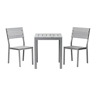 Стол (длина 63 см, ширина 63 см, высота 73 см). Стул (ширина 46 см, глубина 59 см, высота 87 см, ширина сиденья 40 см, глубина сиденья 44 см, высота сиденья 43 см).