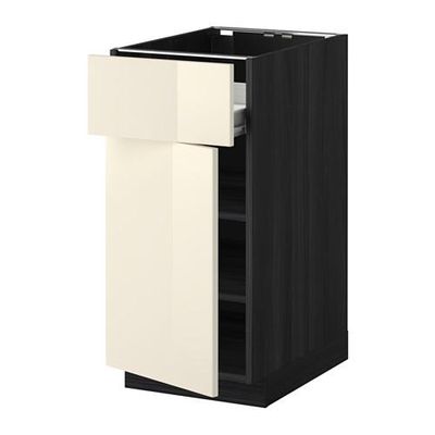 МЕТОД / ФОРВАРА Напольн шкаф с полкой/ящиком/дверью - под дерево черный, Рингульт глянцевый кремовый, 40x60 см