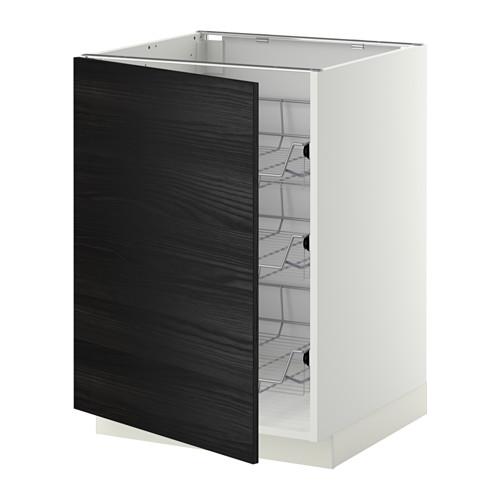 МЕТОД Напольный шкаф с проволочн ящиками - белый, Тингсрид под дерево черный, 60x60 см