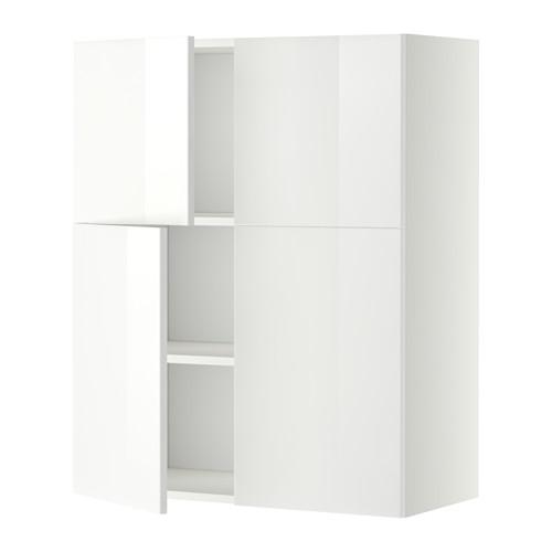 МЕТОД Навесной шкаф с полками/4дверцы - белый, Рингульт глянцевый белый