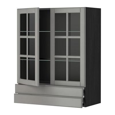 МЕТОД / ФОРВАРА Навесной шкаф/2 стек дв/2 ящика - 80x100 см, Будбин серый, под дерево черный