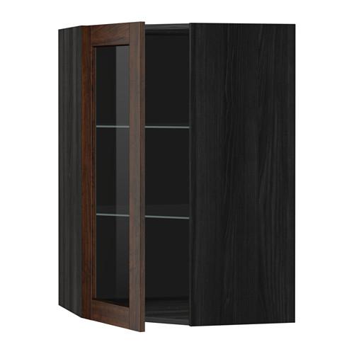 МЕТОД Углов навесн шк с полками/сткл дв - под дерево черный, Эдсерум под дерево коричневый, 68x100 см