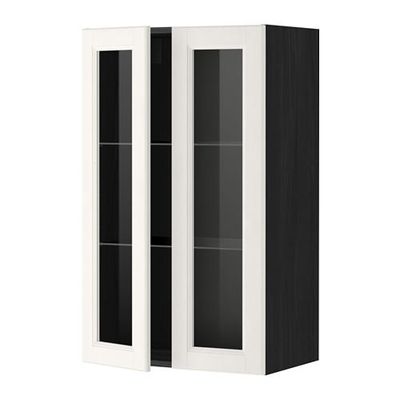 МЕТОД Навесной шкаф с полками/2 стекл дв - 60x100 см, Лаксарби белый, под дерево черный