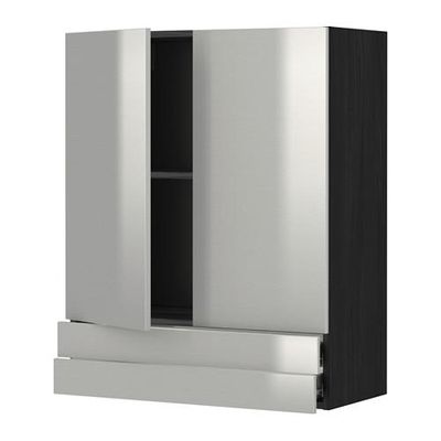 МЕТОД / ФОРВАРА Навесной шкаф/2дверцы/2ящика - 80x100 см, Гревста нержавеющ сталь, под дерево черный