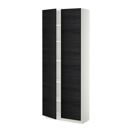 МЕТОД Высок шкаф с полками - белый, Тингсрид под дерево черный, 80x37x200 см