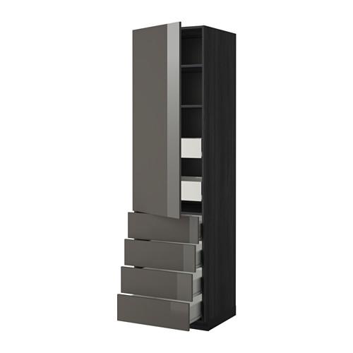 МЕТОД / ФОРВАРА Выс шкаф с плк/6 ящк/ дверц/4 фрнт - 60x60x220 см, Рингульт глянцевый серый, под дерево черный