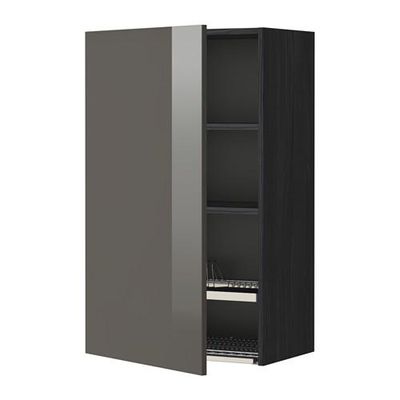 МЕТОД Шкаф навесной с сушкой - 60x100 см, Рингульт глянцевый серый, под дерево черный