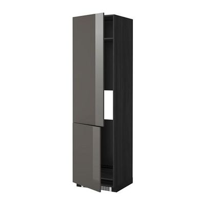МЕТОД Высокий шкаф д/холод/мороз/2дверцы - Рингульт глянцевый серый, под дерево черный