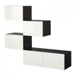 БЕСТО Комбинация для хранения с дверцами - черно-коричневый/глянцевый белый
