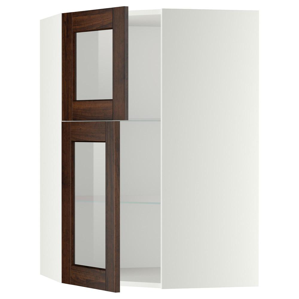 МЕТОД Углов навесной шкаф+полки/2 сткл дв - белый, Эдсерум под дерево коричневый