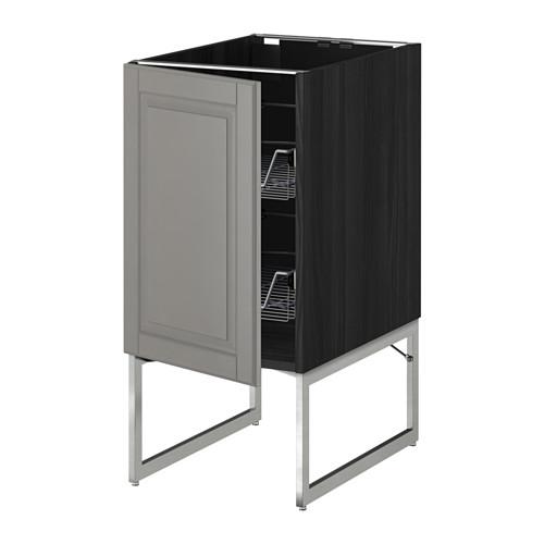 МЕТОД Напольный шкаф с проволочн ящиками - под дерево черный, Будбин серый, 40x60x60 см