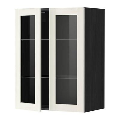 МЕТОД Навесной шкаф с полками/2 стекл дв - 60x80 см, Росдаль белый ясень, под дерево черный
