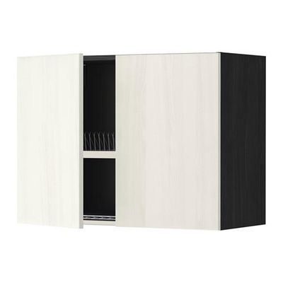МЕТОД Навесной шкаф с посуд суш/2 дврц - 80x60 см, Росдаль белый ясень, под дерево черный