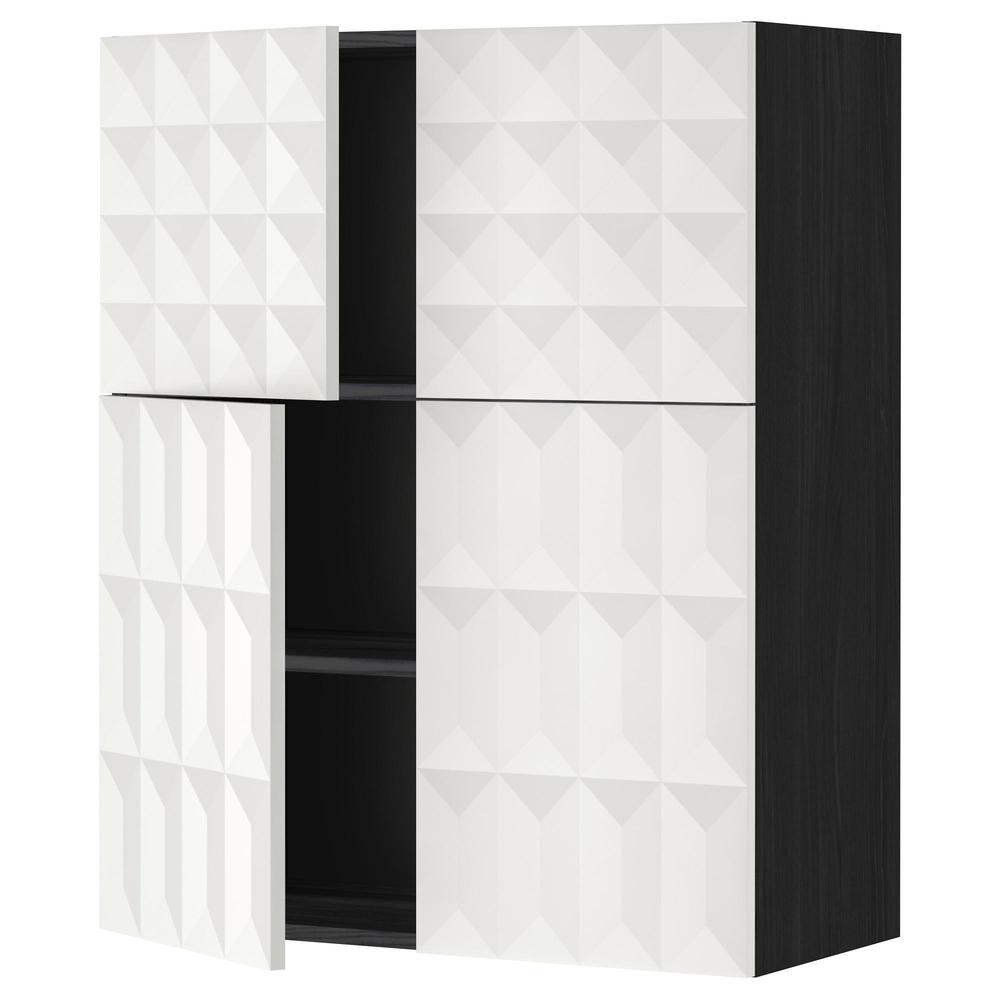 МЕТОД Навесной шкаф с полками/4дверцы - под дерево черный, Гэррестад белый