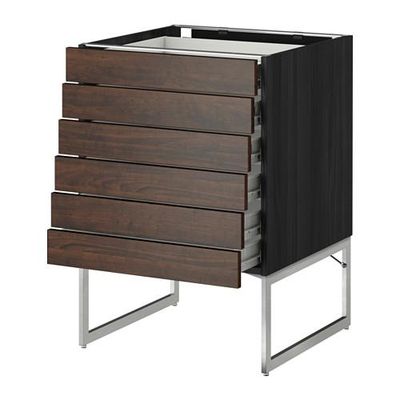 МЕТОД / ФОРВАРА Напольн шкаф 6фронт пнл/6 низ ящ - 60x60x60 см, Эдсерум под дерево коричневый, под дерево черный
