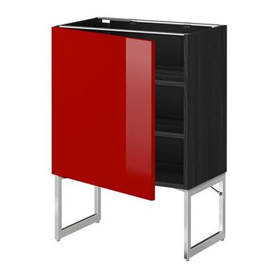 МЕТОД Напольный шкаф с полками - 60x37x60 см, Рингульт глянцевый красный, под дерево черный