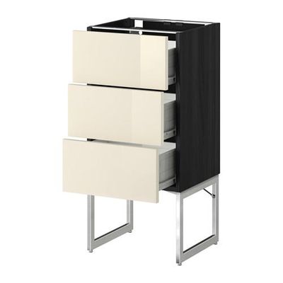 МЕТОД / ФОРВАРА Нплн шк 3 фрнт/3 средн ящика - 40x37x60 см, Рингульт глянцевый кремовый, под дерево черный