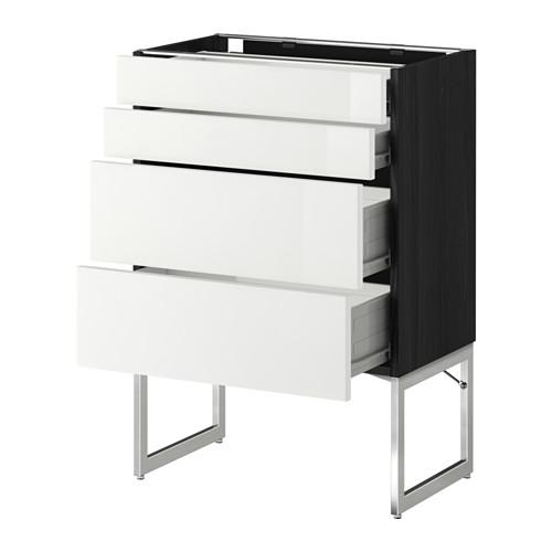 МЕТОД / ФОРВАРА Нплн шк 4 фронт/2 низк/2средн ящ - 60x37x60 см, Рингульт глянцевый белый, под дерево черный