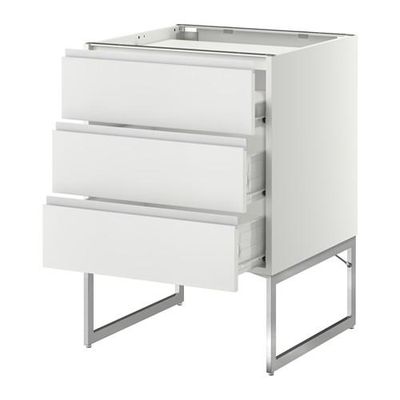 МЕТОД / ФОРВАРА Напольн шкаф/3фронт пнл/3ящика - 60x60x60 см, Нодста белый/алюминий, белый