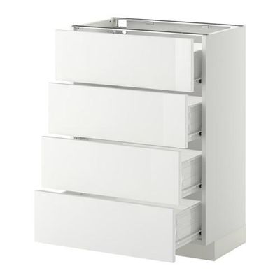 МЕТОД / ФОРВАРА Напольн шкаф 4 фронт панели/4 ящика - 60x37 см, Рингульт глянцевый белый, белый