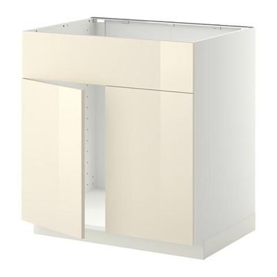 МЕТОД Напольн шкаф п-мойку 2 двр/фрн пнл - Рингульт глянцевый кремовый, белый