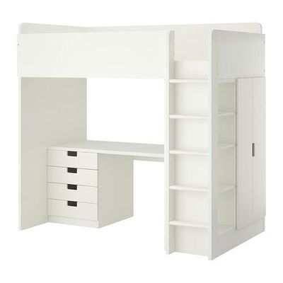 СТУВА Кровать-чердак/4 ящика/2 дверцы - белый