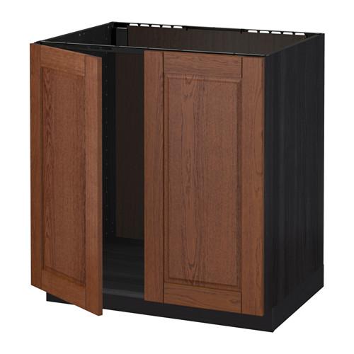 МЕТОД Напольн шкаф д раковины+2 двери - под дерево черный, Филипстад коричневый