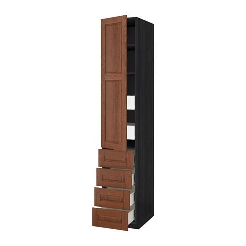 МЕТОД / ФОРВАРА Выс шкаф с плк/6 ящк/ дверц/4 фрнт - 40x60x220 см, Филипстад коричневый, под дерево черный
