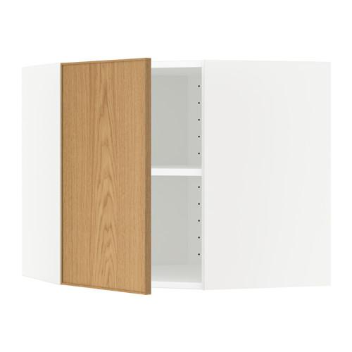 МЕТОД Угловой навесной шкаф с полками - белый, Экестад дуб, 68x60 см