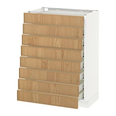 МЕТОД / ФОРВАРА Наполн шкаф 8 фронт/8 низк ящиков - белый, Экестад дуб, 60x37 см