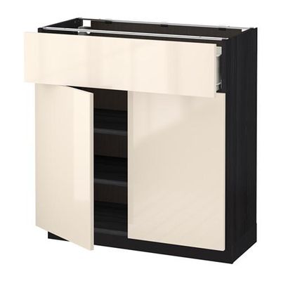 МЕТОД / ФОРВАРА Напольный шкаф+ящик/2дверцы - 80x37 см, Рингульт глянцевый кремовый, под дерево черный