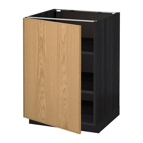 МЕТОД Напольный шкаф с полками - под дерево черный, Экестад дуб, 60x60 см