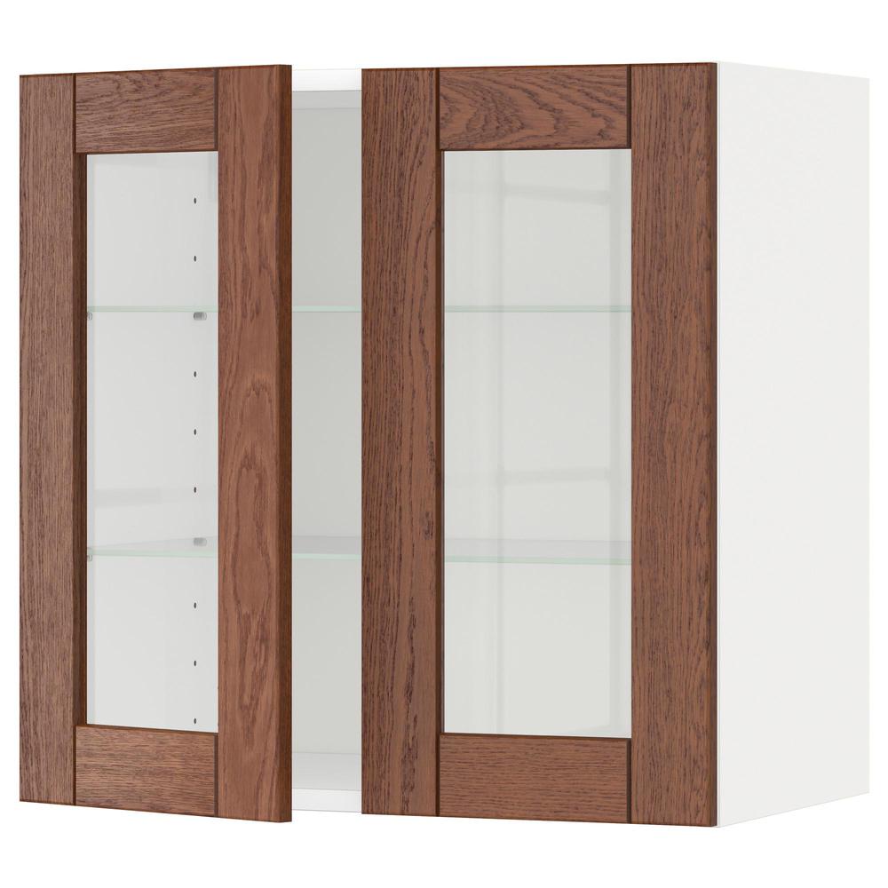 МЕТОД Навесной шкаф с полками/2 стекл дв - белый, Филипстад коричневый, 60x60 см