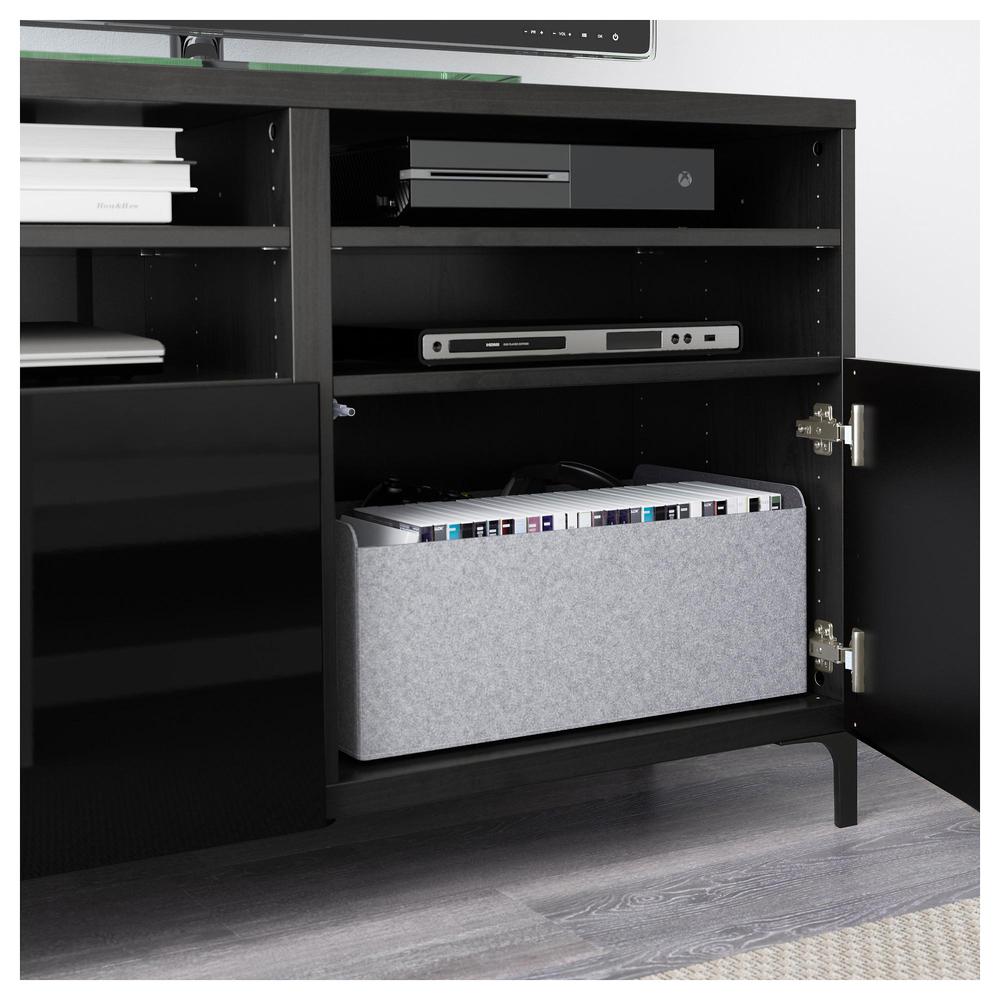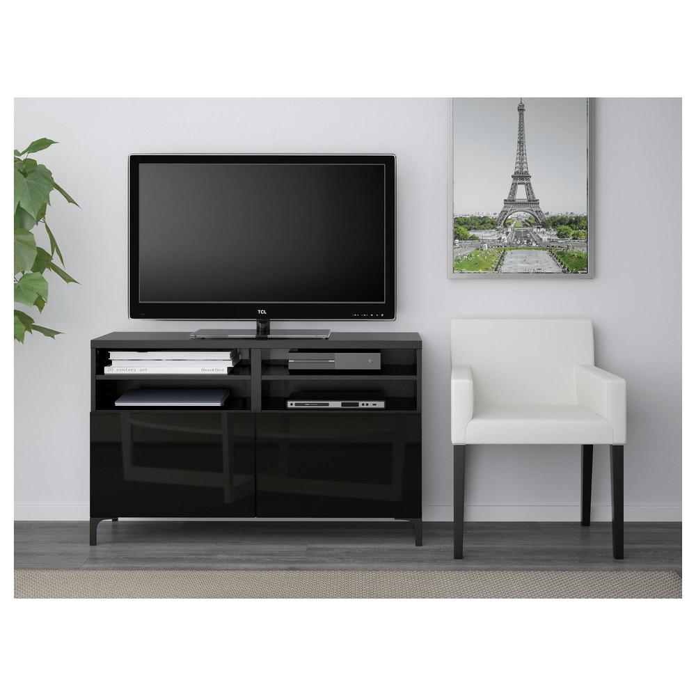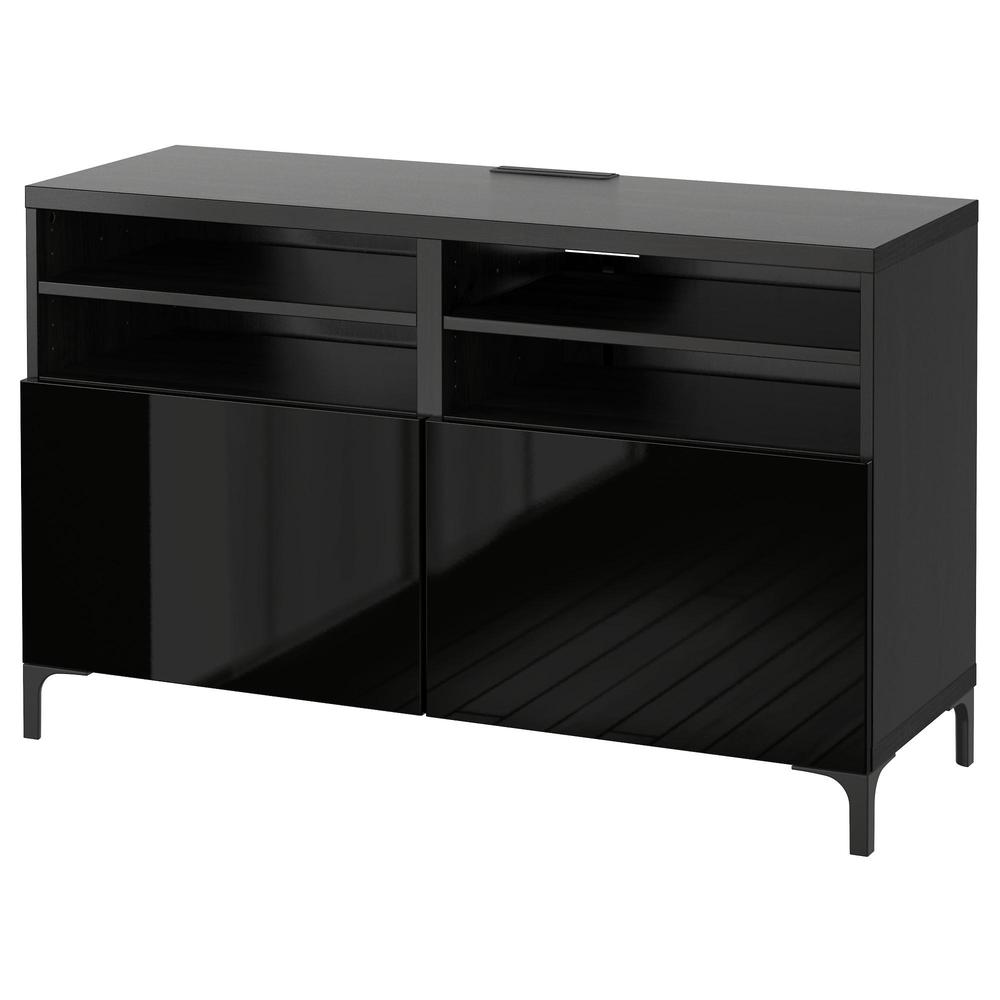 БЕСТО Тумба под ТВ, с дверцами - черно-коричневый/Сельсвикен глянцевый/черный