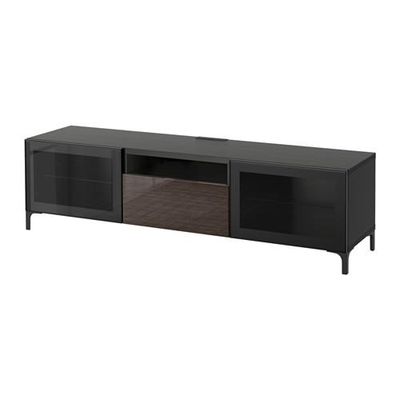 БЕСТО Тумба под ТВ - черно-коричневый/Сельсвикен глянцевый/коричневый прозрач стекло, направляющие ящика, плавно закр