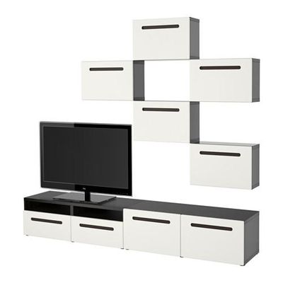 БЕСТО Шкаф для ТВ, комбинация - черно-коричневый/Марвикен белый, направляющие ящика, плавно закр
