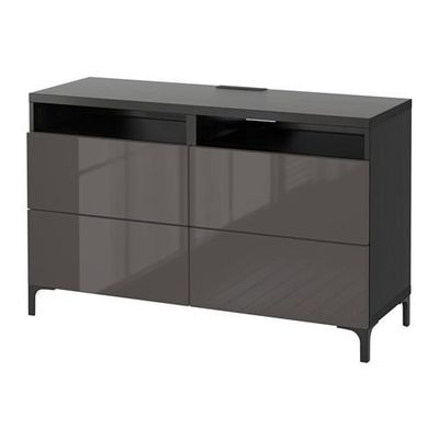 БЕСТО Тумба д/ТВ с ящиками - черно-коричневый/Сельсвикен глянцевый/серый, направляющие ящика,нажимные