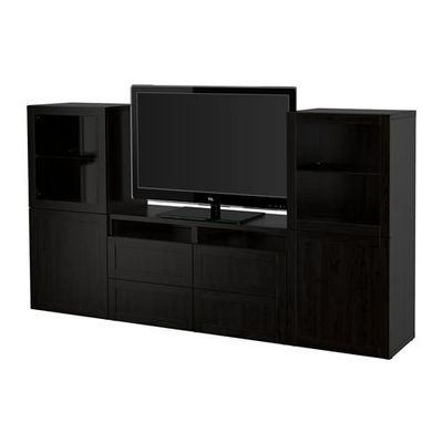 БЕСТО Шкаф для ТВ, комбин/стеклян дверцы - Ханвикен/Синдвик черно-коричневый прозрачное стекло, направляющие ящика, плавно закр