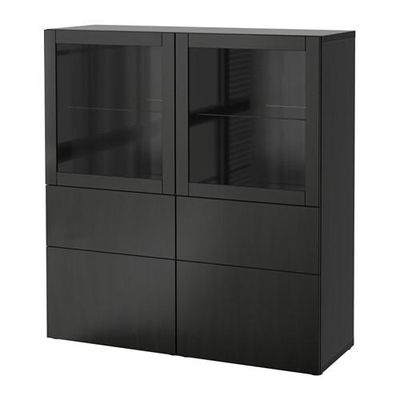 БЕСТО Комбинация д/хранения+стекл дверц - Лаппвикен/Синдвик черно-коричневый прозрачное стекло, направляющие ящика, плавно закр
