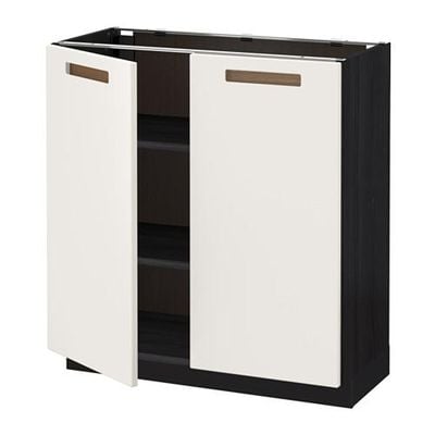 МЕТОД Напол шкаф с полками/2двери - 80x37 см, Мэрста белый, под дерево черный