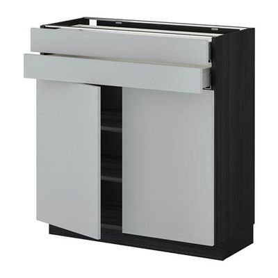 МЕТОД / МАКСИМЕРА Напольный шкаф/2дверцы/2ящика - 80x37 см, Веддинге серый, под дерево черный